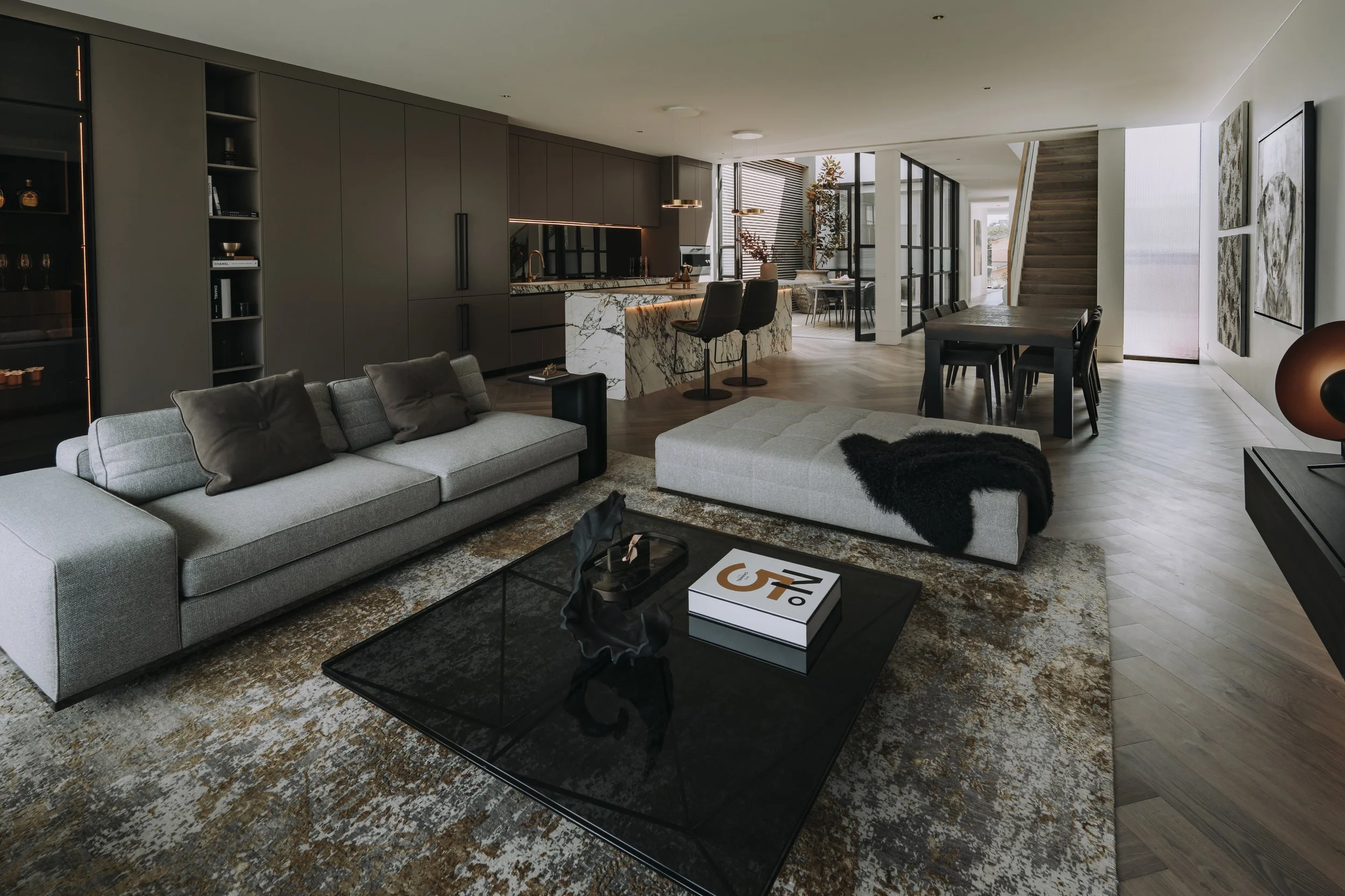 With elegant features and finishes throughout such as European oak herringbone flooring, bespoke handcrafted Italian joinery, enormous windows, soaring ceiling heights and architecturally evocative frameworks.